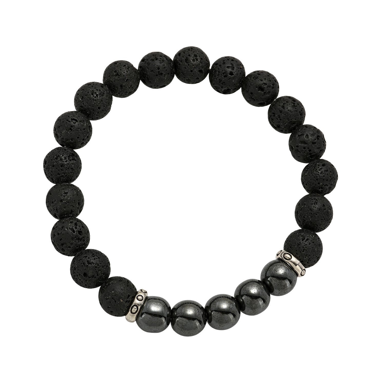 HEMATITE & BLACK BEADED STRETCH BRACELET