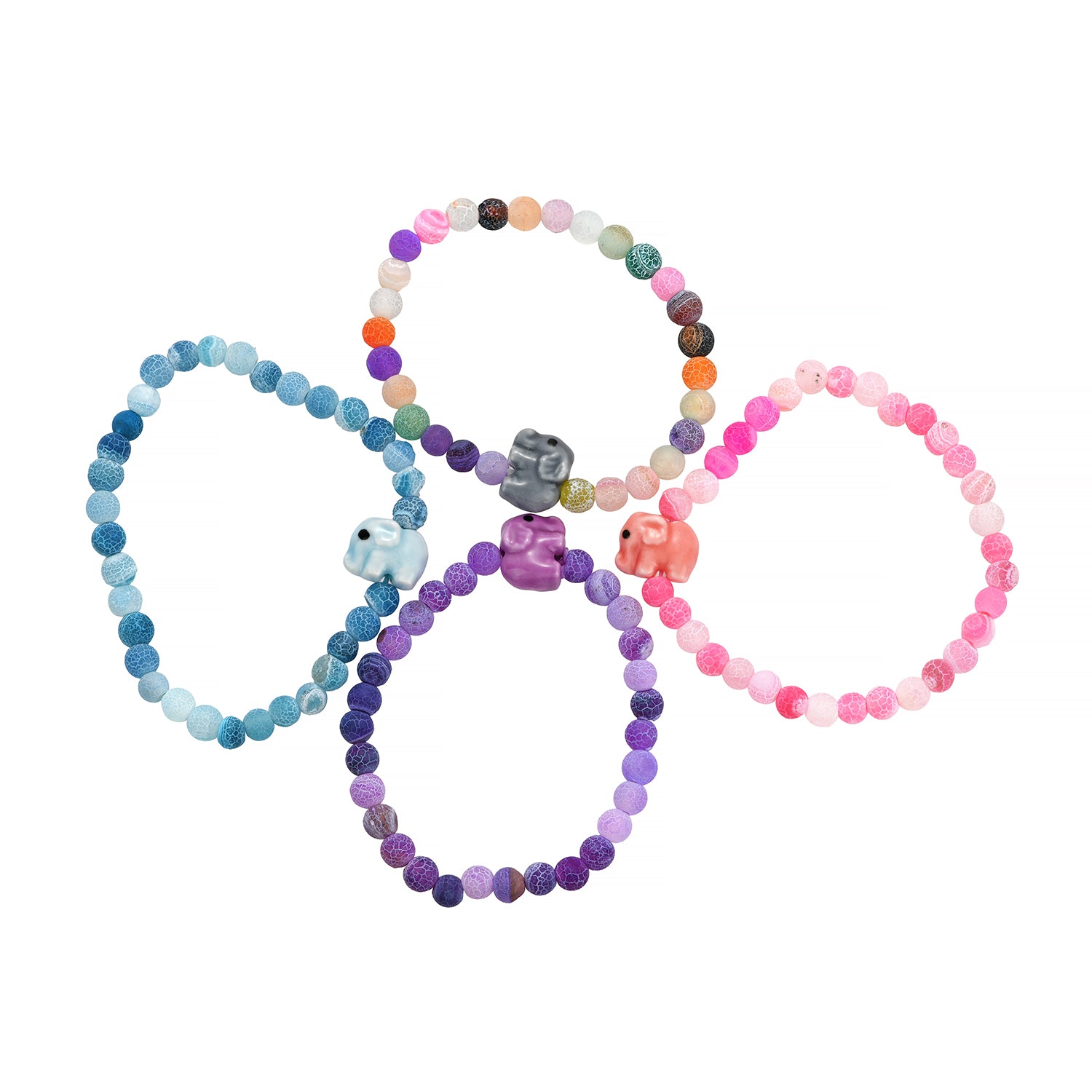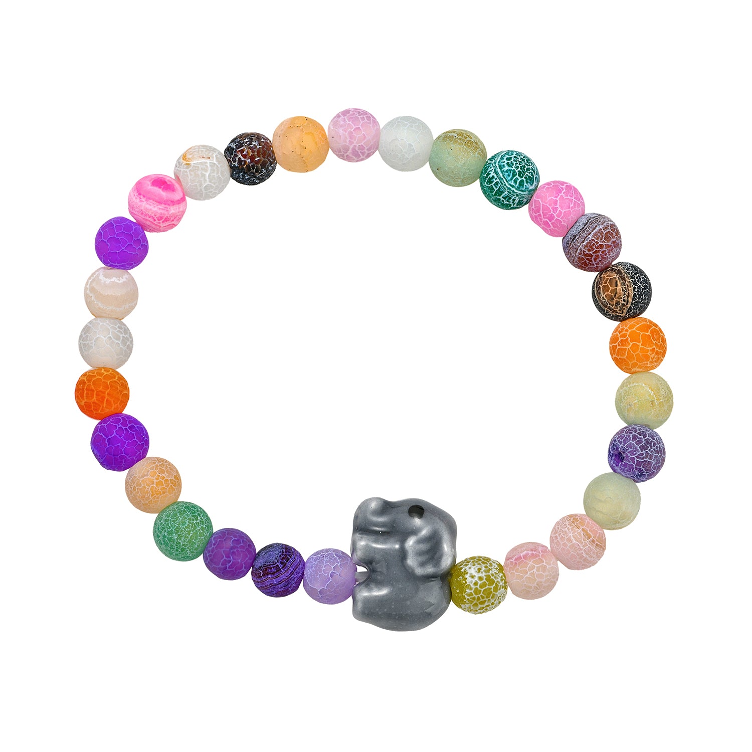 STRETCH BRACELET WITH FROSTED CRACKED AGATE & ELEPHANT BEAD - ASSORTED