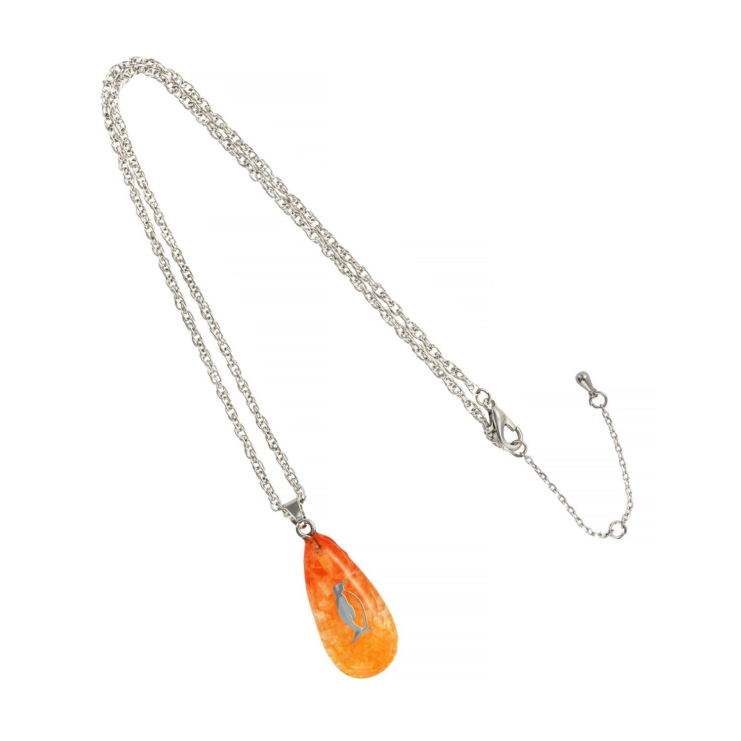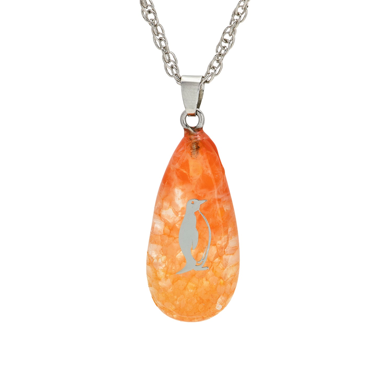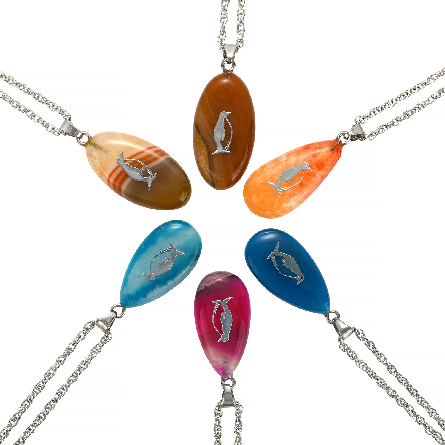 SILVER ROPE CHAIN NECKLACE WITH AGATE STONE & PENGUIN PENDANT CARDED - ASSORTED