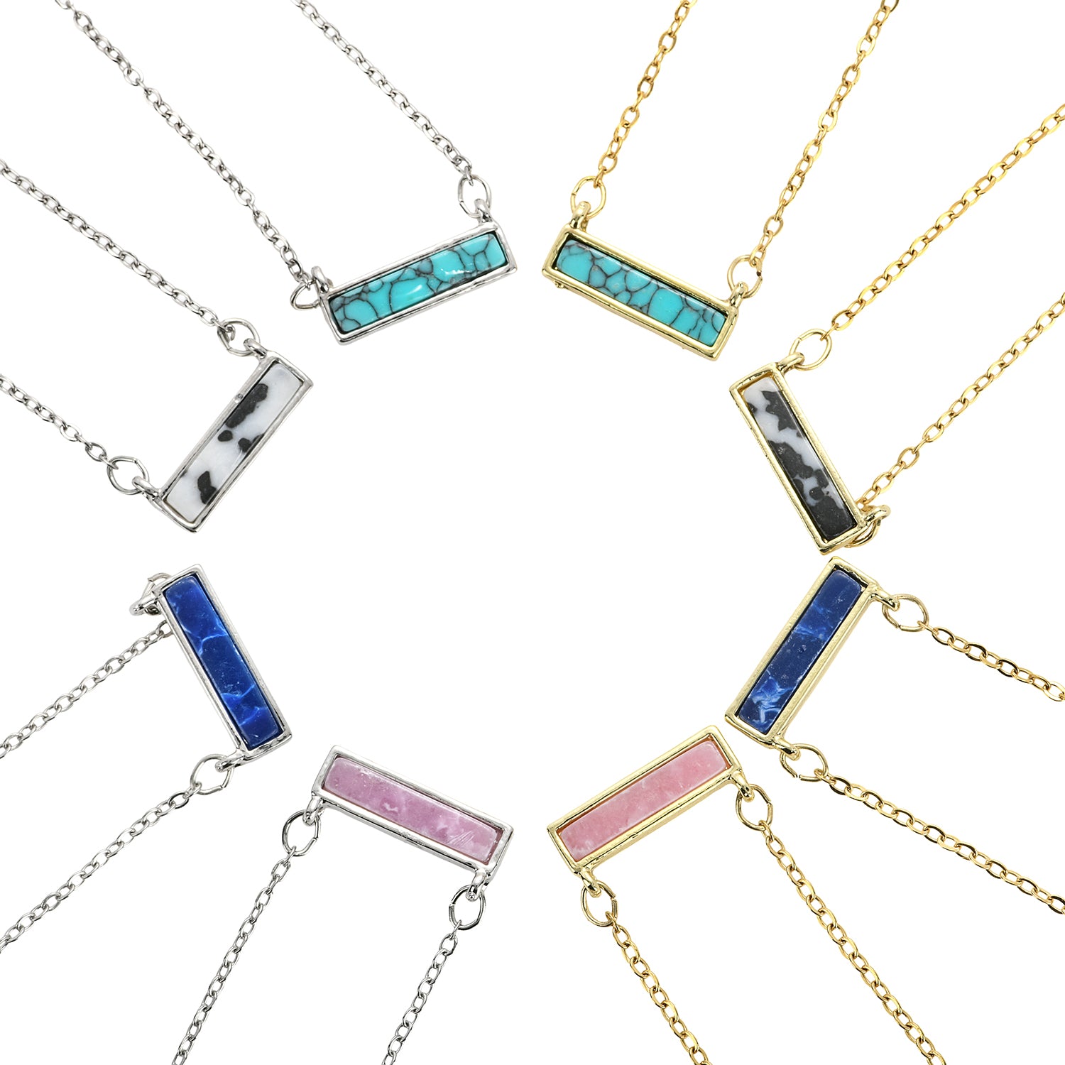 NECKLACE WITH STONE RECTANGULAR PENDANT CARDED - ASSORTED