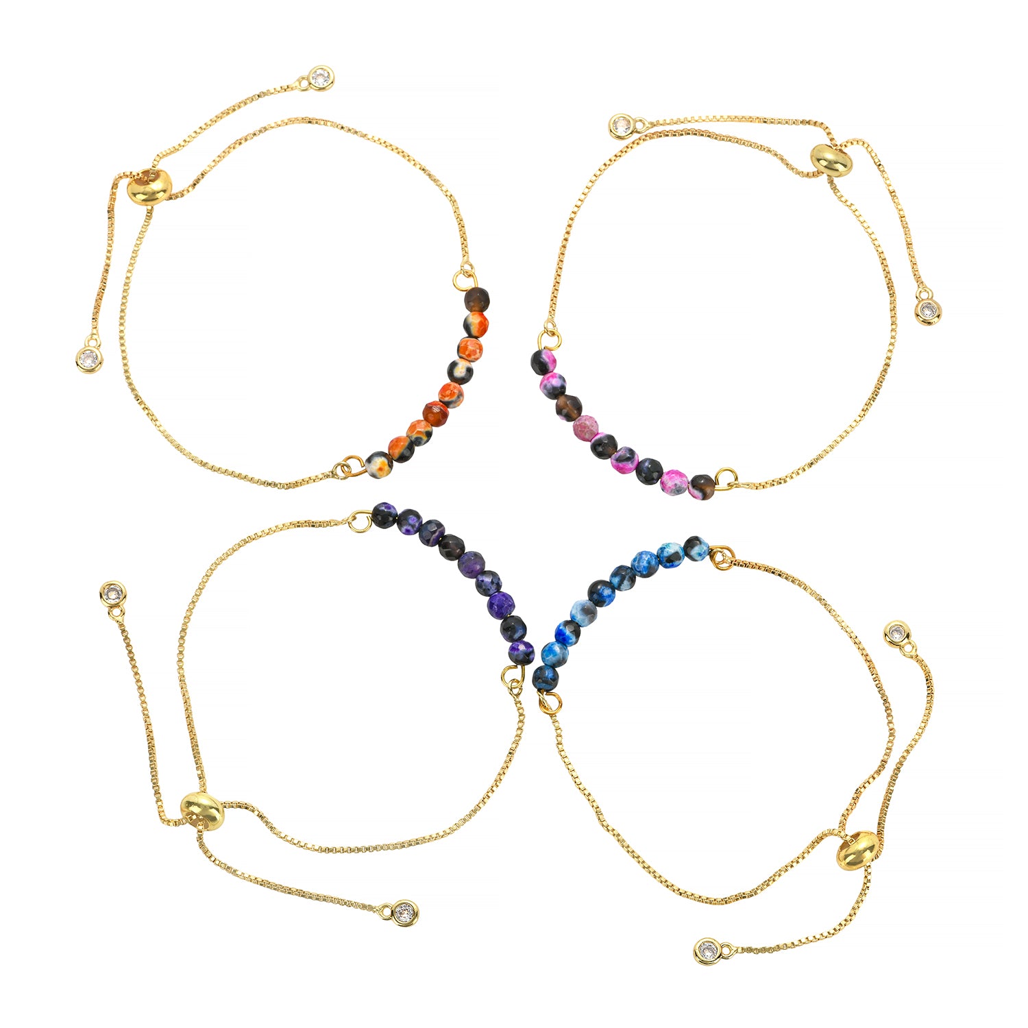 BOX CHAIN SLIDER BRACELET WITH COLORED BEADS CARDED - ASSORTED