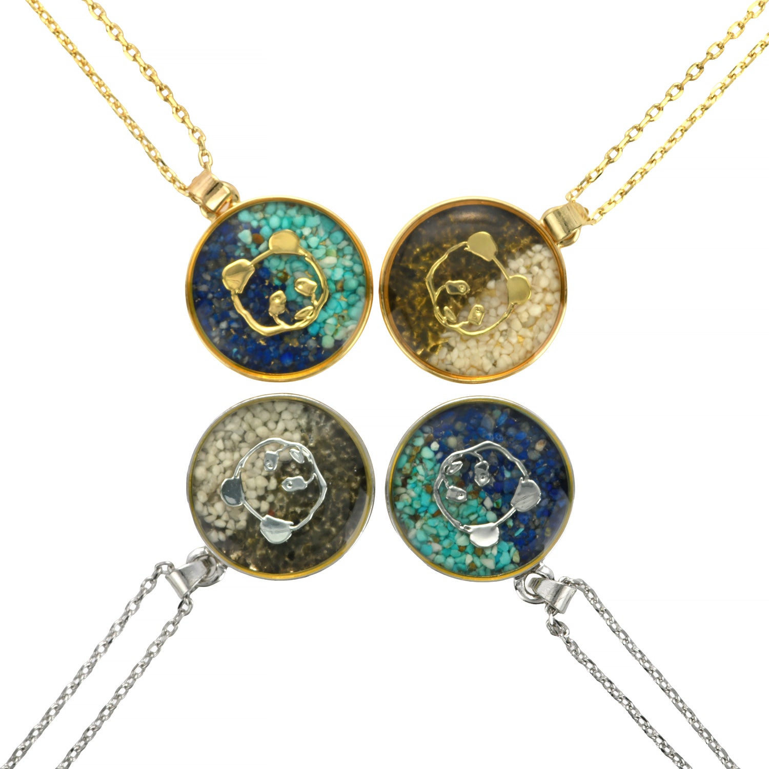 LINK CHAIN NECKLACE WITH CRUSHED STONE PANDA ASSORTED - CARDED